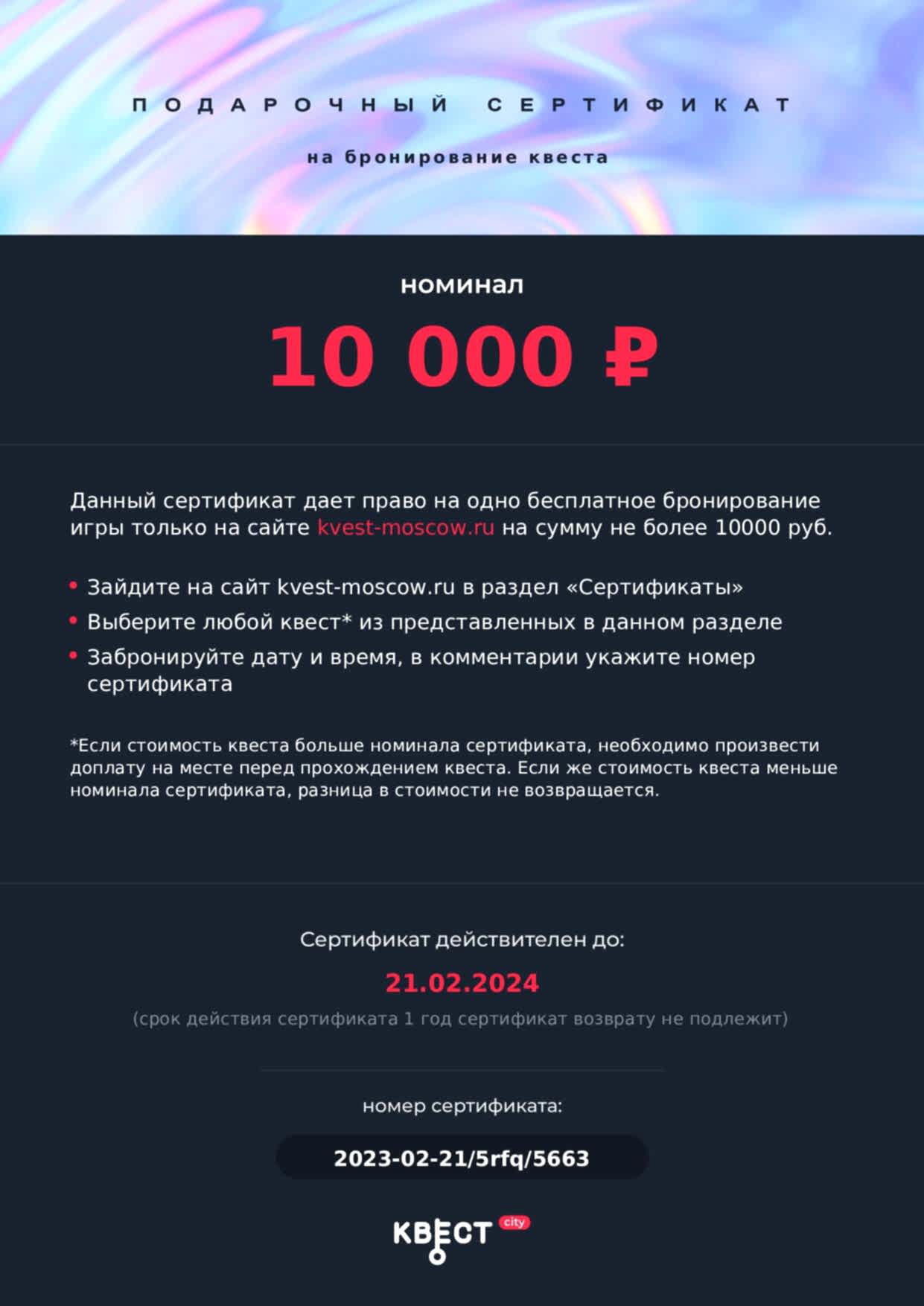Вручив сертификат, приобретенный на нашем портале, Вы сможете Pin-Up не только объект Вашего внимания, но и себя, поскольку в этом случае так же сможете принять участие в игре. А друг, подруга или родственник, получив сертификат от «Квест City» в подарок, смогут самостоятельно выбрать квест по душе прямо на нашем портале.